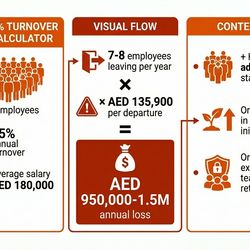 For a 50-employee SME with 15% annual turnover (UAE average is 8%), that's 7-8 replacements yearly. At mid-level costs, you're haemorrhaging AED 950,000-1.5 million annually just on turnover.