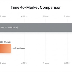 Total savings: 60% versus hiring permanent staff immediately. Time to market: 8 months faster.